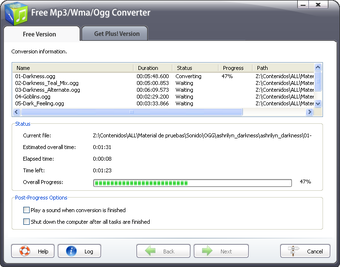 L'interface et le confort d'utilisation de Free Mp3/Wma/Ogg Converter sont excellents, notamment grâce à la possibilité de traiter un grand nombre de fichiers en même temps.